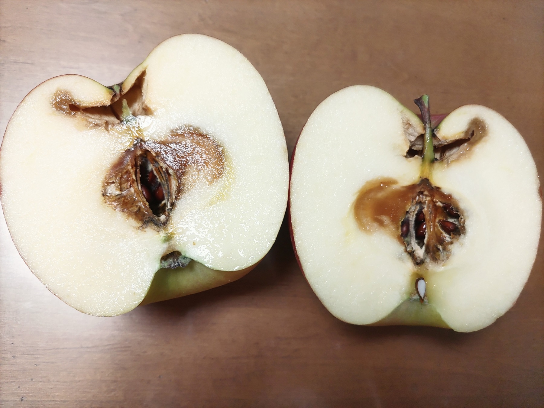 りんごが傷んでくると、上記のような感じで、見た目にも変化が表れます。